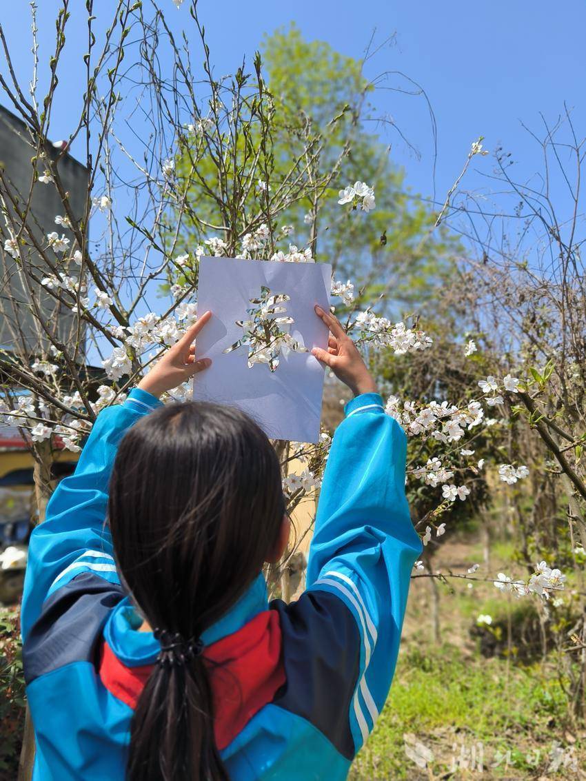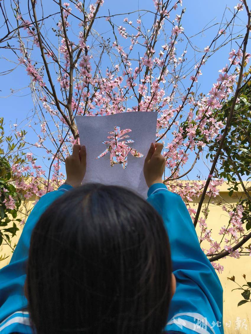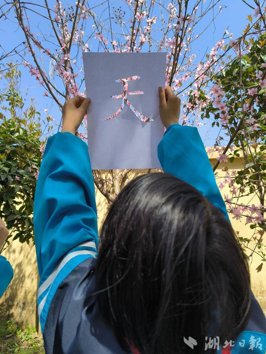 孩子们在寻找最佳拍摄角度时,不知不觉观察到花瓣的层叠纹理,触摸到新叶的柔软脉络。“原来树枝上毛茸茸的芽苞像毛笔头!”五年级的黄芷怡惊喜地展示着镜头里“春”字右上角冒出的点点鹅黄。