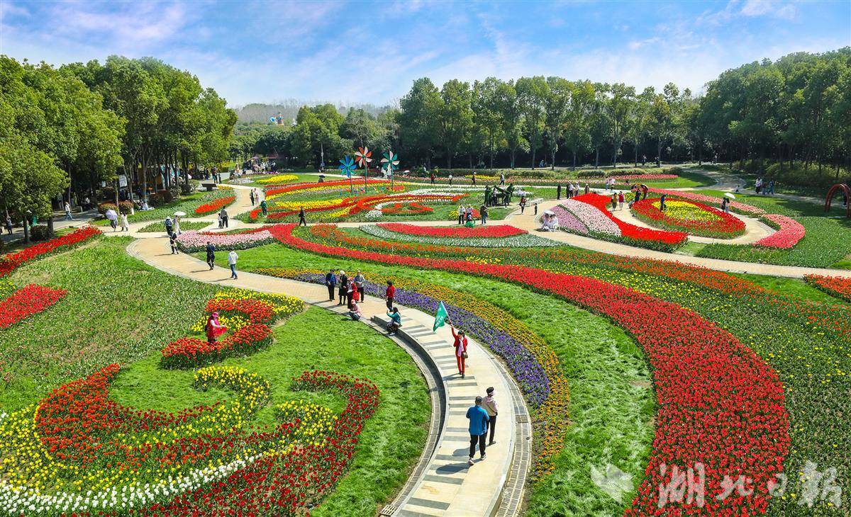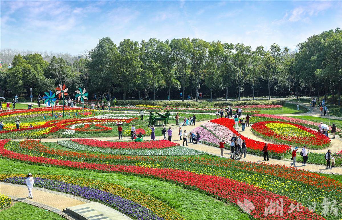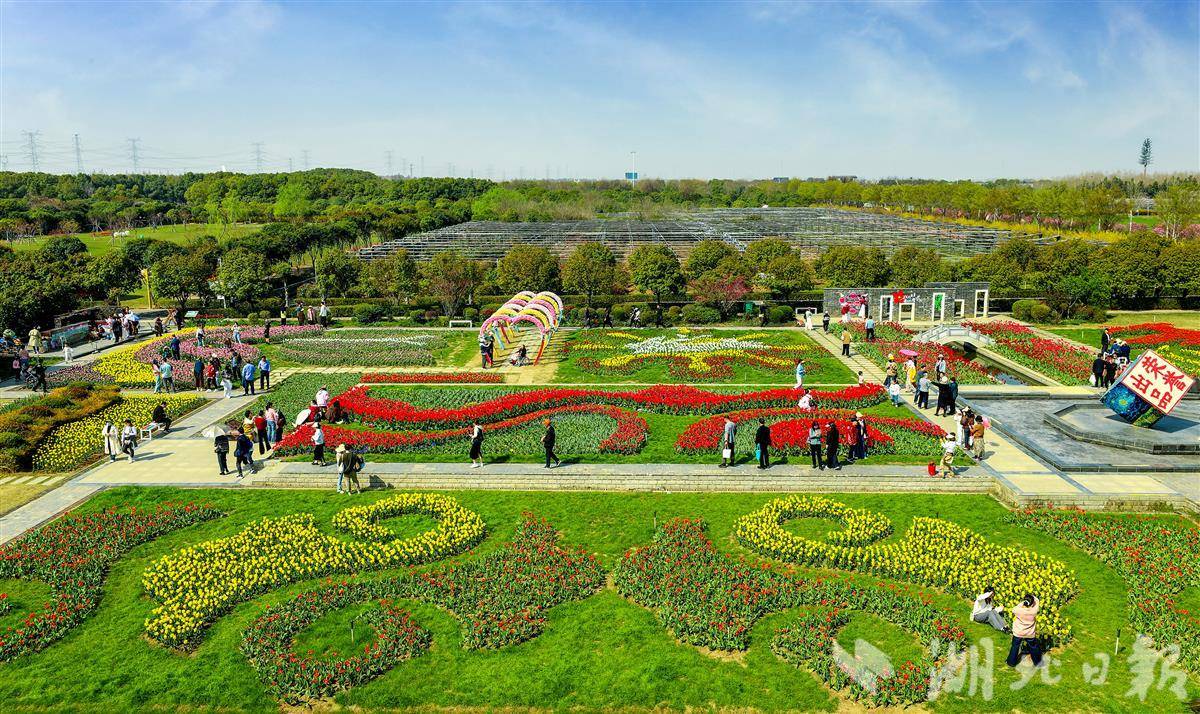 3月22日,武汉市东西湖区郁金香主题公园110万株郁金香进入盛花期。红色、