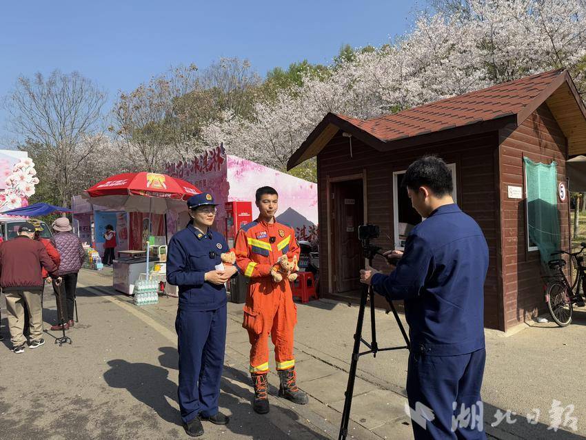 湖北日报讯(通讯员张承妹)近期,黄石市团城山公园内樱花竞相绽放,公园内人潮涌动。3月25日上午,在游人赏樱的一旁,另一道靓丽的风景线同样吸引了大量游客驻足——黄石市消防救援支队下陆大队开展了一场别开生面的消防安全直播活动。