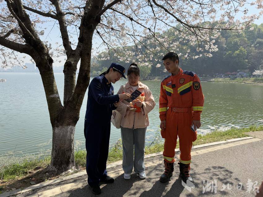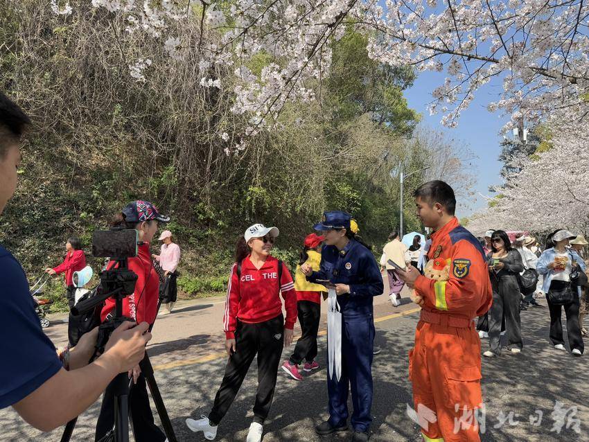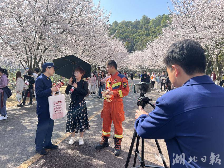 据介绍,每年这个时期这里聚集了数千名赏樱游客,消防大队便想利用这个机会向群众普及消防安全知识,提升全社会消防安全意识。