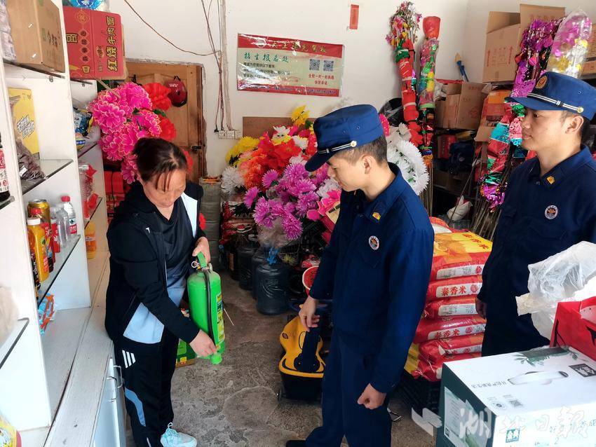 清明节前夕,消防人员走进纸花厂、祭祀用品销售门店进行消防安全检查提示,督促隐患整改。检查过程中,监督执法人员以案为例,警示店主及过往市民做好祭祀防火措施,教授如何使用灭火器处置初期火灾,如何逃生自救等消防知识。针对检查发现的祭祀用品占用疏散通道、电气线路私拉乱接、电动自行车违规停放等问题,消防人员现场提出建议并督促商家整改到位。此外,结合清明期间祭扫频繁的实际情况,大队以公墓、陵园等祭祀场所为重点,全面细致检查了各场所的消防水源、消防设施器材、疏散通道、安全出口等是否符合消防安全要求,是否完好有效,督促各场所负责人要深刻吸取近期各地森林火灾事故的经验教训,全面落实消防安全主体责任,做好值班巡查,及时消除火灾隐患,确保场所消防安全。