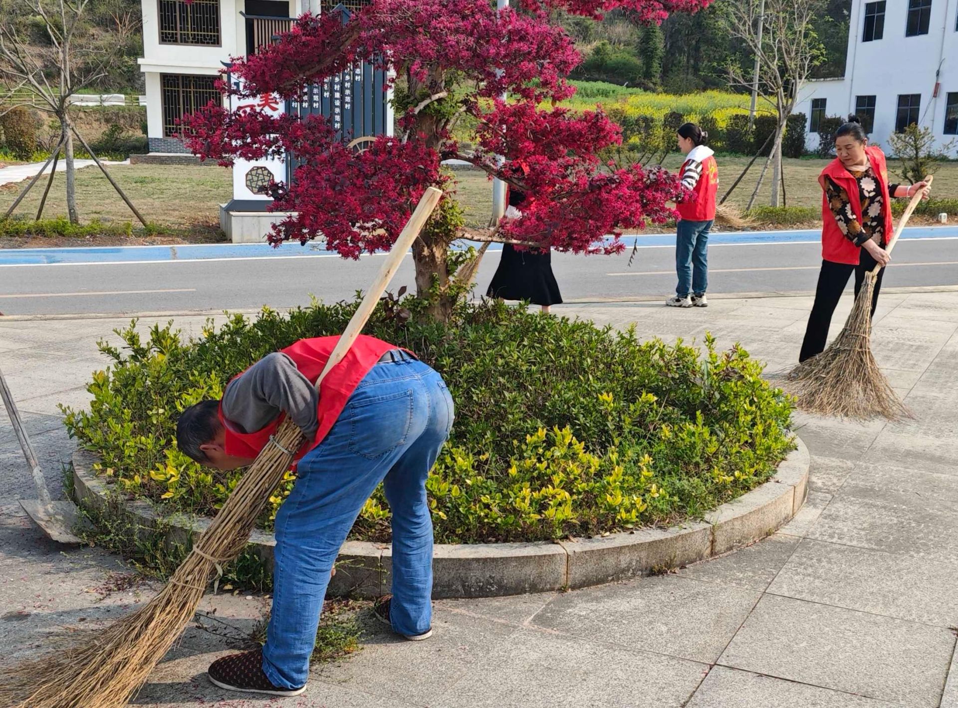 湖北日报客户端讯(通讯员吴佳鑫、石教英)3月27日清晨,阳新县王英镇高山村文化广场上跃动着片片“志愿红”。村干部骆一鸣正布置任务:“今天咱们兵分三路,文化长廊组、广场清洁组、景观提升组,大家看这样安排行不?”“我看花坛那片的杂草得专门处理”“长廊的木质雕花要先用鸡毛掸子除尘”......村民们你一言我一语补充着细节,晨光里飘荡着热烈的讨论声。