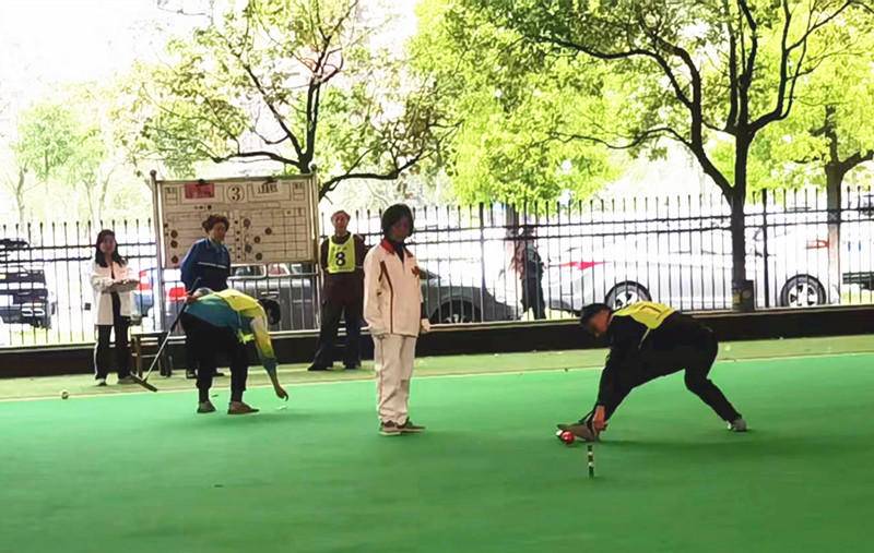 赛场上,参赛的8支门球队队员个个精神饱满,热情高涨。他们在教练的指挥下,紧握球杆,弯腰瞄准,场下观众的喝彩声与清脆的门球撞击声交织在一起,氛围紧张热烈。