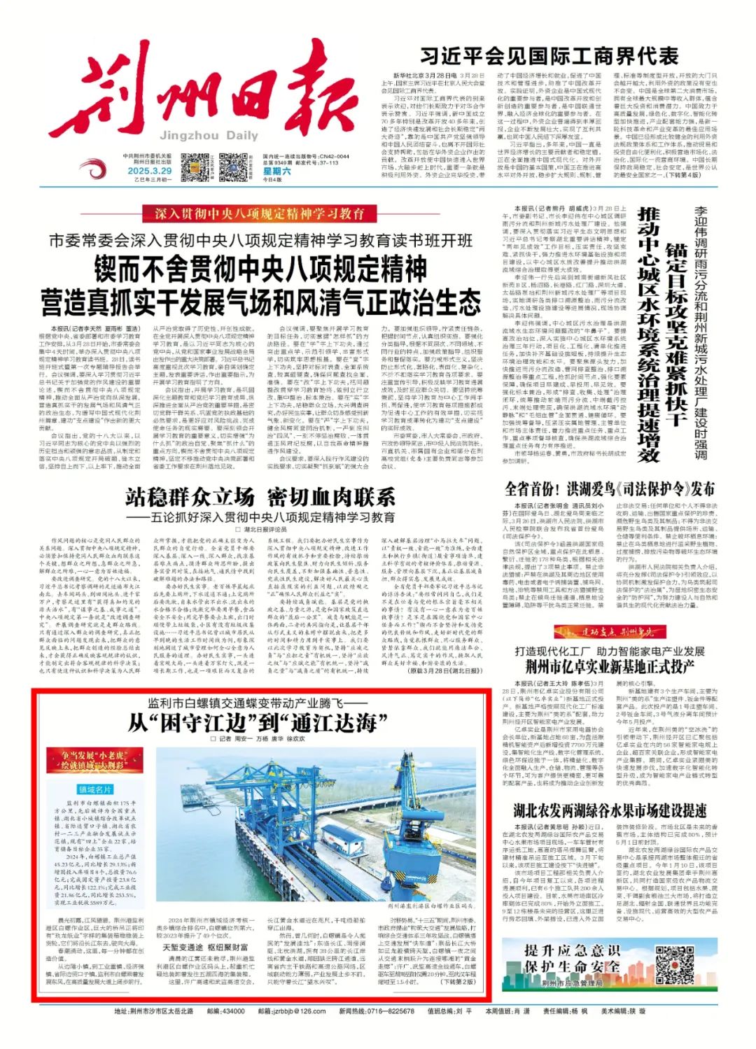 晨光初露,江风猎猎。荆州港监利港区白螺作业区,巨大的桥吊正将印有“玖龙纸业”字样的集装箱稳稳装上货轮,它们将沿长江东去,驶向大海。
