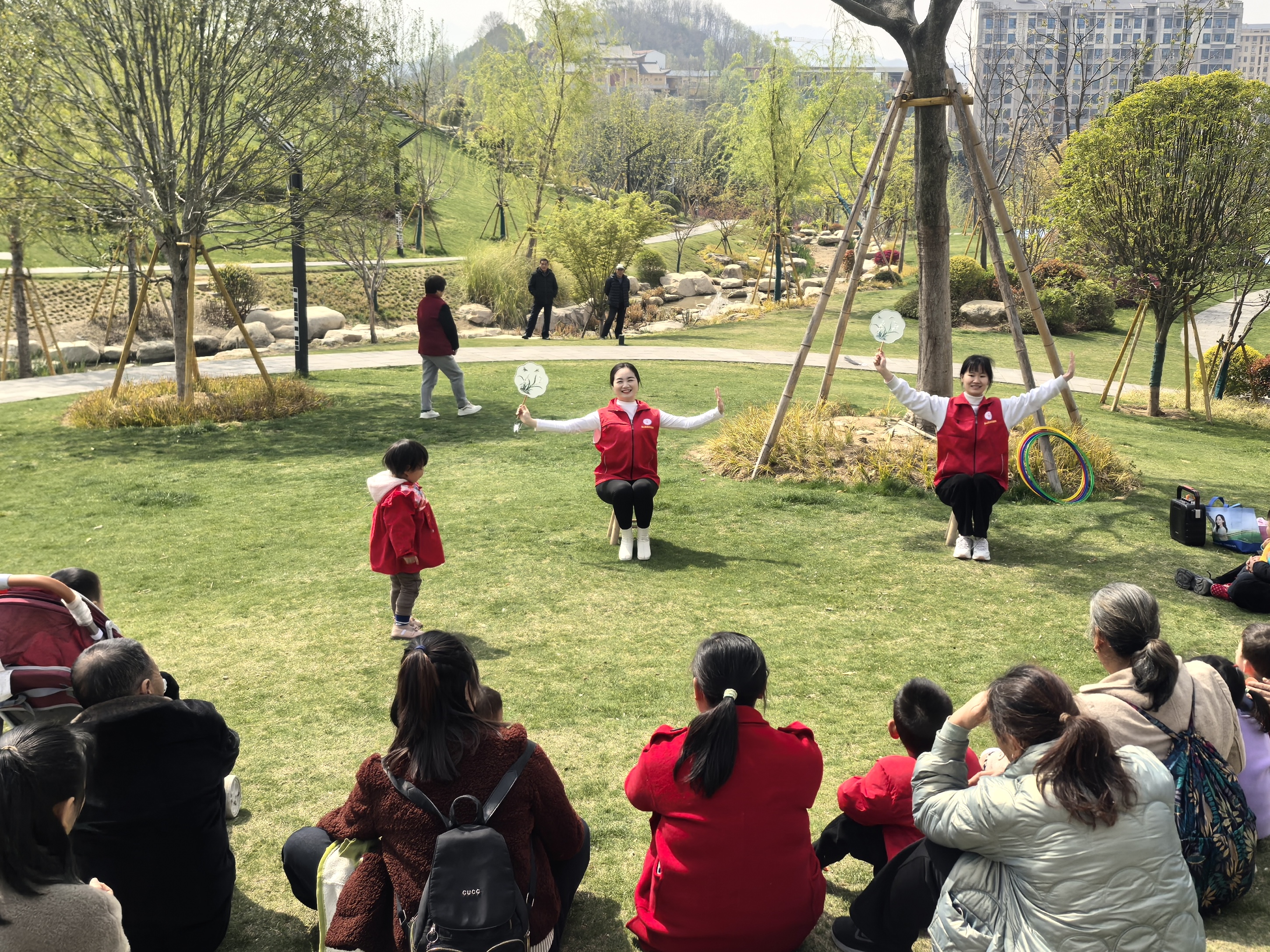 3月31日上午,英山县医共体总医院妇幼保健院儿童康复中心在市民公园举办春游活动,20余名特殊儿童在特教老师和家长陪伴下,通过趣味游戏、舞蹈互动和自然探索,完成了一堂充满欢笑的户外康复课程。