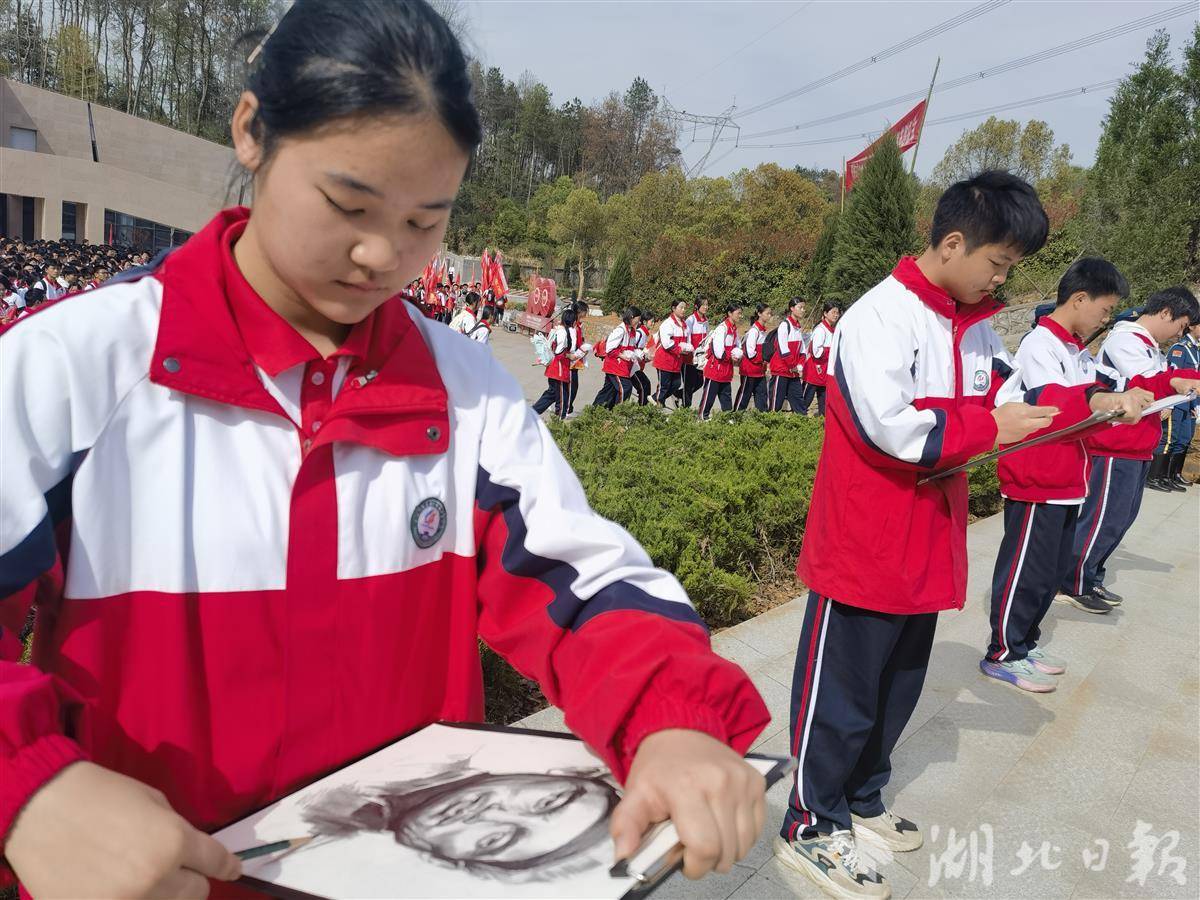 “我终于画出了你的样子。”4月1日,在湘鄂赣边区鄂东南龙港红军烈士陵园前,阳新县实验高级中学学生邢佳琪同其他几名美术生一道,用画笔为烈士画像。