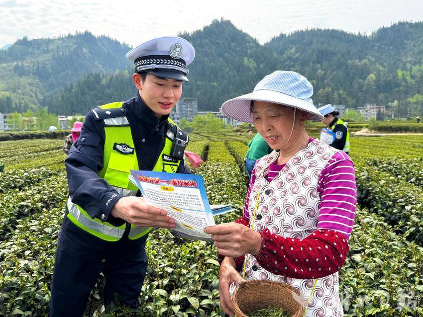 湖北日报客户端讯(通讯员罗凡)4月3日,咸丰县公安局交通警察大队民辅警到高乐山镇官坝村、沙坝村茶园基地,向茶农讲解农用三轮车违法载人、超员超载、酒后驾驶以及骑乘摩托车、电动车不佩戴安全头盔等行为的严重危害,引导村民自觉摒弃交通陋习,安全出行。