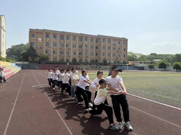 此次趣味运动会形式灵活,内容丰富,分教师项目和学生项目分别设置了“两人三足”“夹夹乐”“一圈到底”“齐头并进”“螃蟹接力赛跑”“60米障碍接力”“拔河”等活动。比赛中,呐喊声不绝于耳,参赛队员们团结拼搏、力争上游,场面紧张有序。