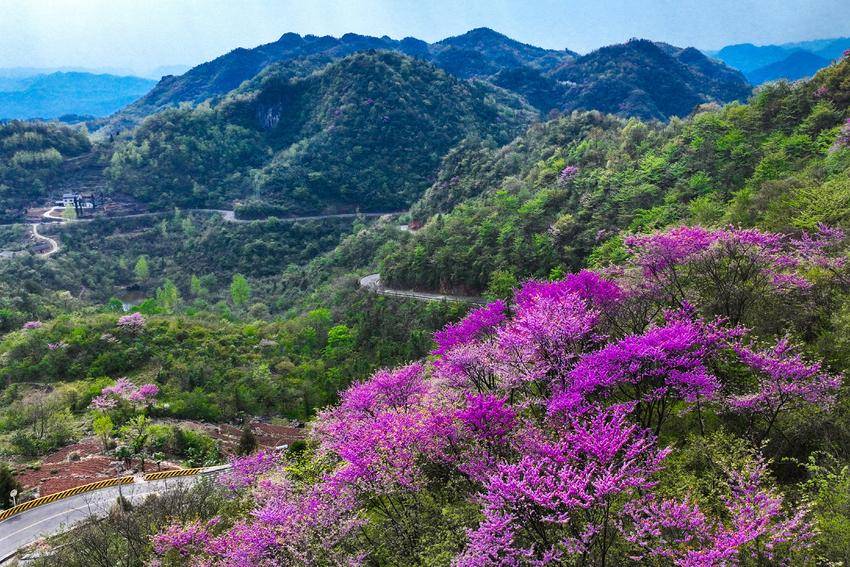 湖北日报客户端讯(通讯员点宣)4月8日,湖北省宜昌市点军区白云山山脉,成片的野生巨紫荆花竞相绽放,吸引众多徒步爱好者和摄影爱好者前来游玩拍照。据了解,巨紫荆是紫荆属落叶乔木,花期3—4月,远望似云霞铺展,近观如彩蝶翩跹,素有“满条红”的美誉,是特有的珍稀乡土物种。近年来,点军区不断加强生态环境保护,通过严格落实白云山片区整体开发规划,使这片曾经鲜为人知的区域正逐步走进大众视野,成为乡村旅游的新热点。