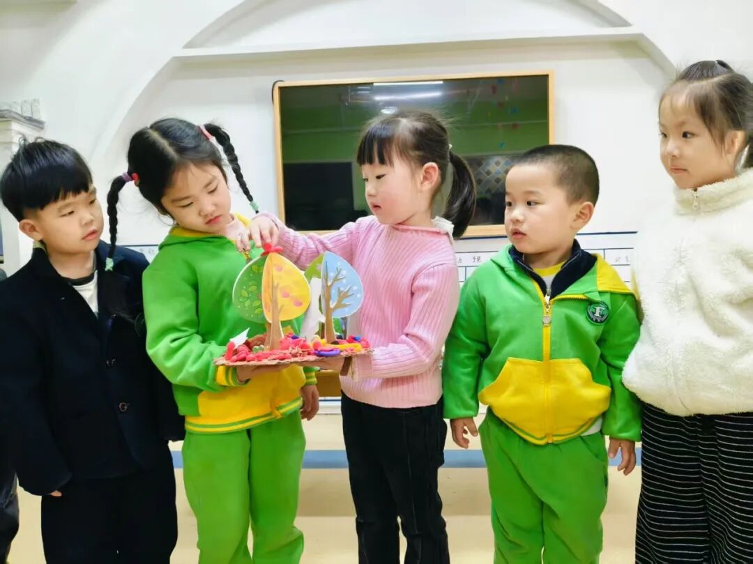 孩子们通过主题活动延伸出来的小组活动,由小组一起完成的《美丽的树林》。孩子们分工合作,画小草和花,捏小动物,讲故事等等,创作出来的作品真是不尽相同,各有千秋。
