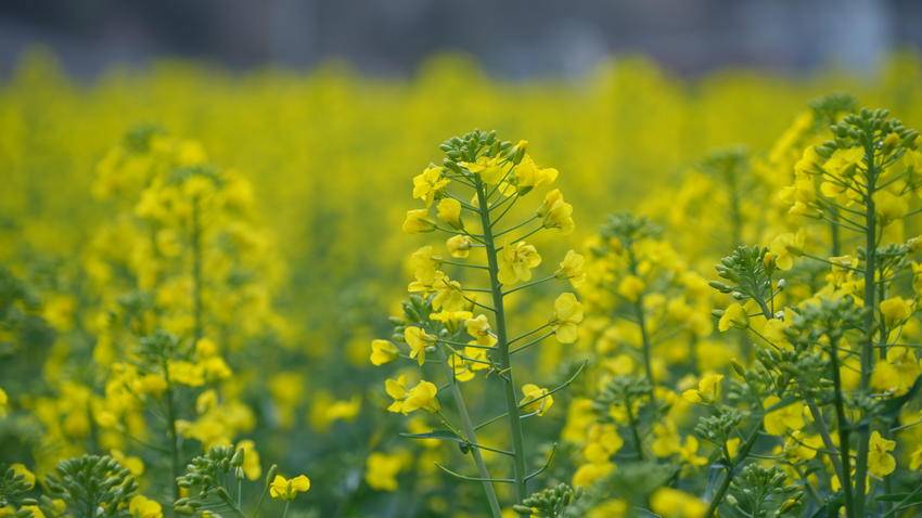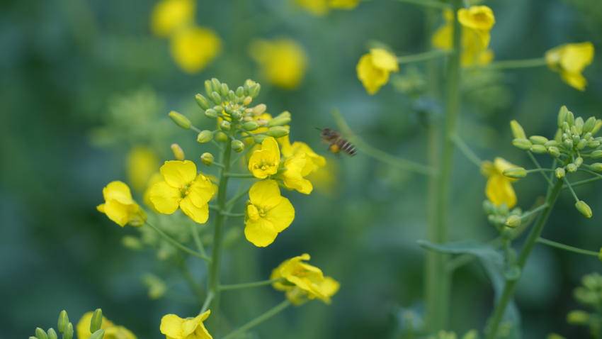 走进花海,芬芳扑鼻,花朵随风轻摇。花丛间,蜜蜂、蝴蝶忙碌穿梭,灵动十足。花田新添网红萌宠与趣味打卡设施,丰富游客体验。目前,油菜花正值盛花期,预计花期能持续4周左右。