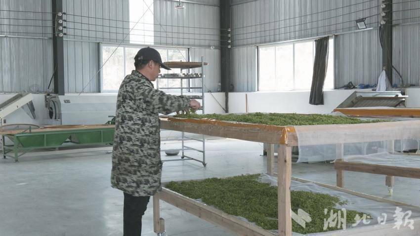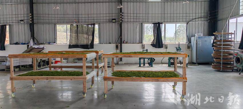 走进茶园的茶叶加工车间,车间整齐地排放着数台自动化茶叶加工机械,上午刚采摘下来的茶芽正被摊开摆放在架子上。据车间师傅介绍,制茶是个复杂的工艺,新鲜采摘的茶叶,要经过摊青、杀青、理调(温度烘烤),提香,烘干等工序,才能送到消费者手中。晴天采摘的茶芽和小雨天采摘的茶芽制作时长、制作工艺和温度设置不同,口感也有差别,晴天采摘的茶叶会回甘,采摘和制作的每个步骤都会影响到茶叶的口感。