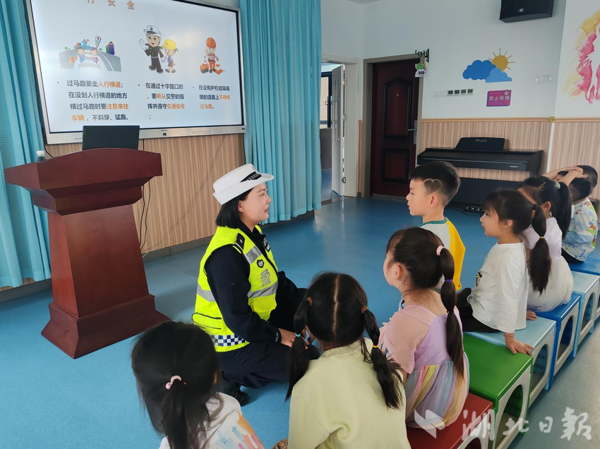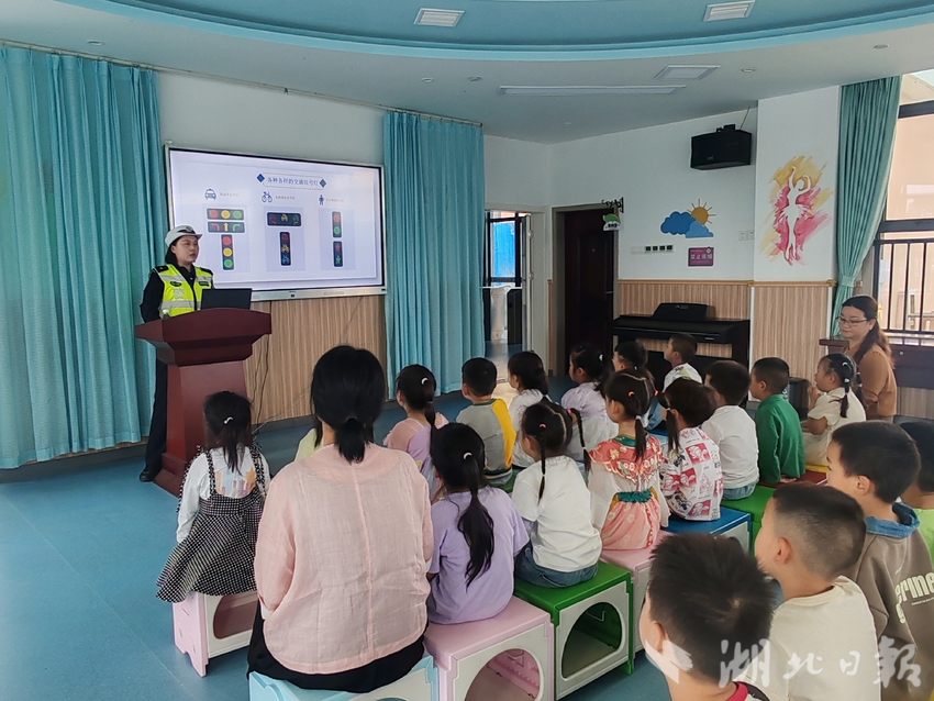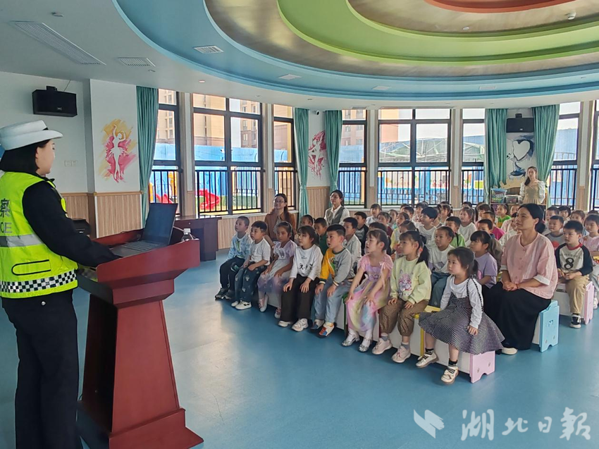 活动中,民辅警重点从幼儿日常出行应该注意的道路交通安全常识出发,通过观看视频的方式,向幼儿们讲解了安全过马路、“一盔一带”等知识,促使他们增强交通安全意识,提高自我保护能力。随后,民辅警还向幼儿们展示了交通标志图片,向他们介绍了常见的交通标志,如红绿灯、人行横道、禁止停车等,并说明了这些标志的含义和作用,让幼儿们能够在日常生活中正确识别和遵守交通规则。最后,民辅警通过有奖问答和幼儿们温馨互动,将安全教育知识和趣味性融为一体,让幼儿们在轻松愉快的氛围中掌握了安全知识。