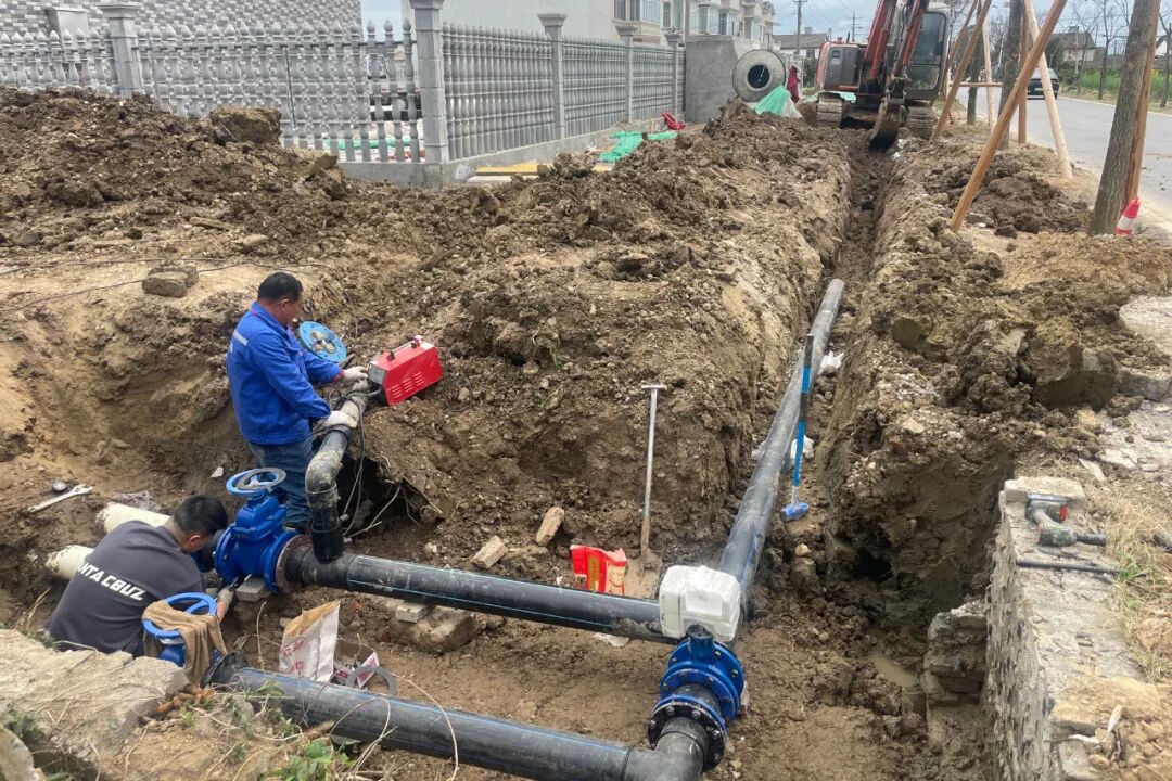 董市镇是中部百强乡镇,全镇辖24个村、两个居委会,常住人口逾6万人。近年来,随着项目建设加速推进,全镇有万余农村居民向城镇集中。城镇用水量的激增,导致老旧的入村管网水源和水压都不够。遇上高温季节和集中用水高峰,高岗地带的居民户只得错峰做饭和洗浴,不少农户甚至得囤水。