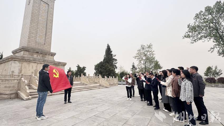 在庄严肃穆的革命烈士纪念碑前,全体党员整齐列队,敬献花篮、鞠躬默哀,深切缅怀为民族独立、人民解放事业英勇献身的革命先烈。党总支组织委员杨芳同志带领大家重温入党誓词,铿锵誓言回荡在陵园上空,表达了全体党员赓续红色血脉、践行初心使命的坚定决心。