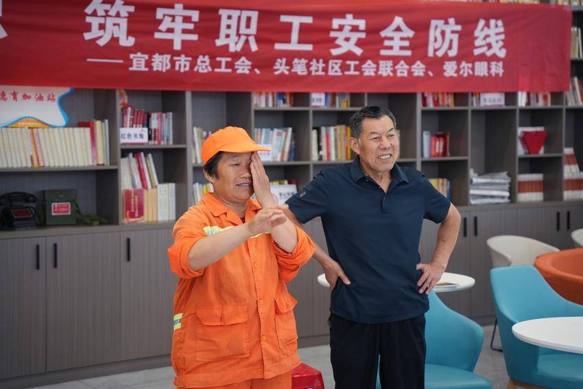 活动现场,通过播放视频形式深入普及网络安全、生态安全等多领域的安全知识,并佐以生动翔实的案例,让户外劳动者对国家安全的重要意义有了更为深刻的感悟与理解。随后,湖北省劳动模范李龙清带来了一场别开生面的安全教育宣讲,结合自身丰富的工作经历,围绕家庭用电、用气安全、自然灾害应急措施,以及户外工作中的突发事件处理方法等方面,进行了细致入微地讲解。活动还邀请了宜都市爱尔眼科的专家团队开展眼科义诊,为大家提供视力、眼压、眼底等全方位的眼部检查。