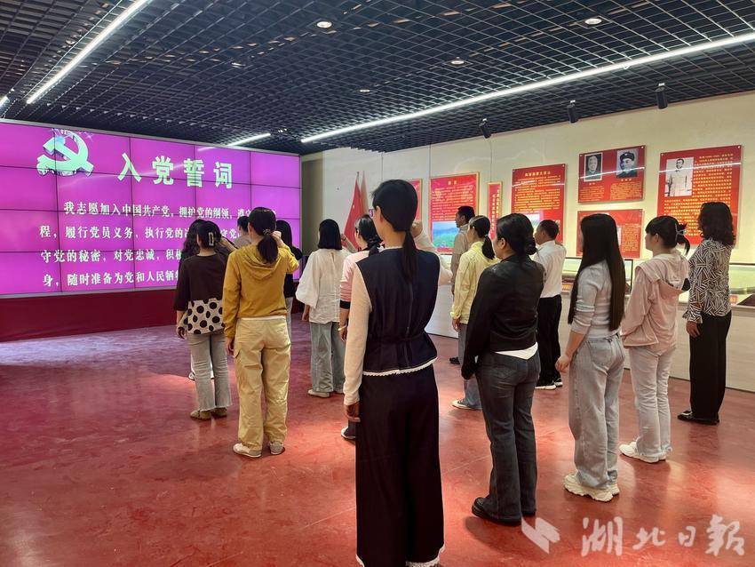 在张集杨畈纪念馆,全体党员重温入党誓词。随后,在讲解员引导下,党员们参观了纪念馆和江汉日报社旧址,瞻仰革命文物,了解《江汉日报》在解放战争中的重要作用,深刻感悟革命先烈坚守信仰的精神。