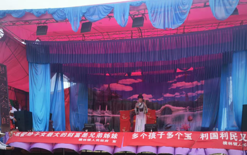 天门花鼓戏载歌载舞、生活气息浓郁,深受群众喜爱。活动以陶潭村村委会为主场,连续举办五天花鼓戏演出,上演《花墙会》《三女拜寿》等经典剧目。村委会两侧悬挂“多个孩子多个宝,利国利民又防老”“有子有女就是好,儿孙满堂才叫福”“父母留给子女最大的财富是兄弟姊妹”等标语,现场发放《天门市鼓励生育政策明白卡》300余份,镇工作人员、村妇女主任为40余名群众提供一对一政策解读。