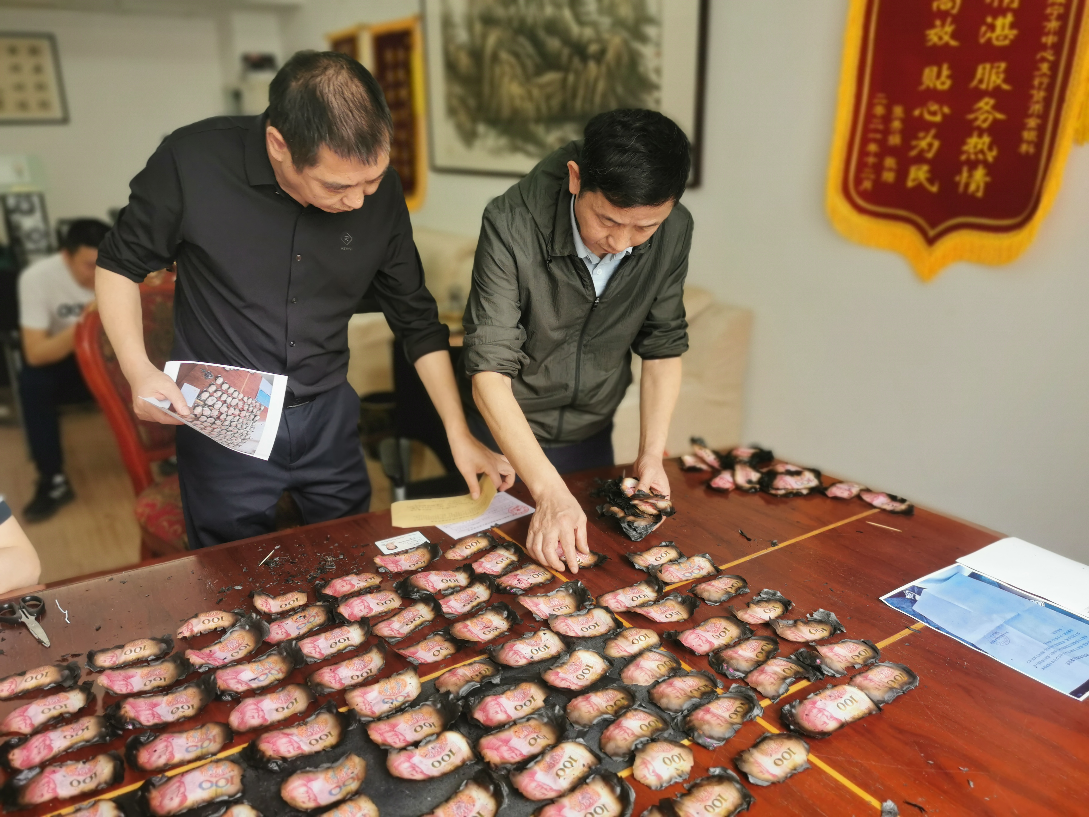 工作人员使用镊子、刷子等特殊工具,连续工作4个多小时,对400余张火烧币进行精细处理,依据《中国人民银行残缺污损人民币兑换办法》,最终鉴定出符合兑换标准的纸币464张,兑换率达92.8%。