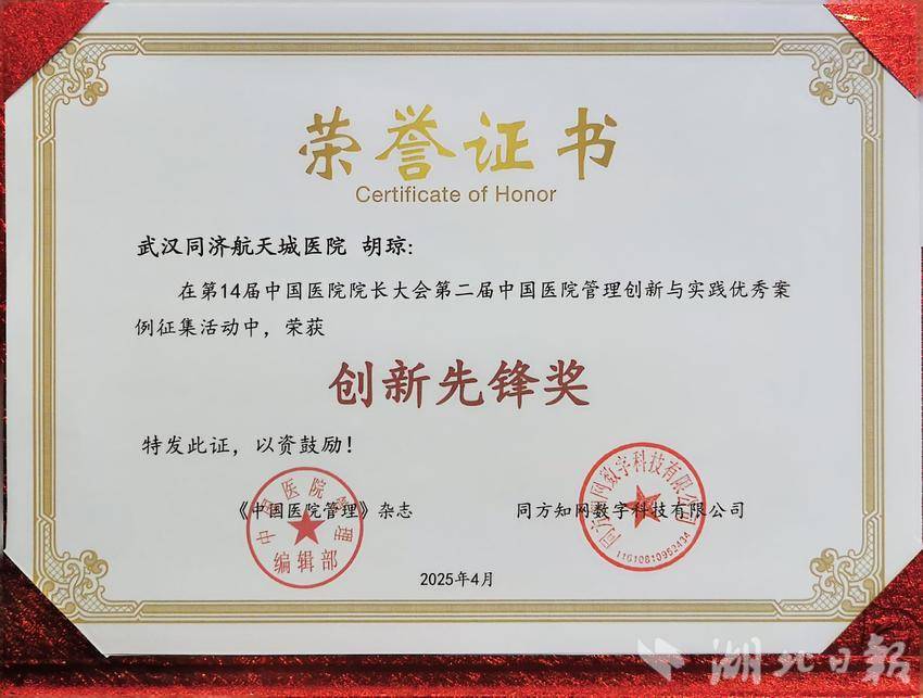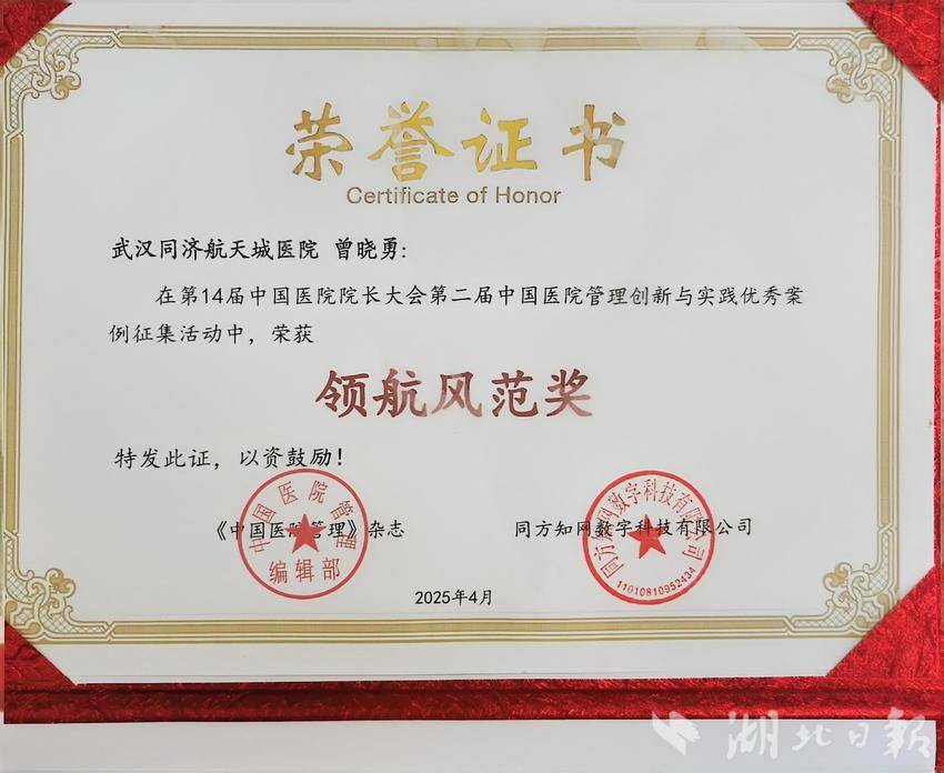 由《中国医院管理》杂志携手中国知网共同发起的“第二届中国医院管理创新与实践优秀案例征集”活动,全国400多家医疗机构踊跃参与,共征集具有代表性的2000多个管理案例,涵盖了医院运营管理、智慧医疗、基层服务、科研创新、专科建设、质量管理、中医药创新等多个方向。本案例征集活动首次开展“机构+个人”双轨制评选模式,经过严格评审,最终评选出170个优秀案例。其中,武汉同济航天城医院上报的案例项目“破局新生·初创三级医院高质量发展运营探索”“武汉同济航天城医院优化患者体检的路径与策略”分别获评为“领航风范奖”和“创新先锋奖”优秀案例。