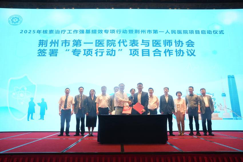 4月25日,由中国医师协会核医学医师分会联合国家原子能机构核技术(放射性药物工程转化)研发中心共同发起的“核素治疗工作强基提效专项行动”发布暨荆州市第一人民医院项目启动仪式,在荆州市南国温德姆酒店举行。同期召开的荆州市核医学质控中心2025年第一季度质控会议,汇聚全国核医学领域专家,共探基层核素治疗能力建设路径。
