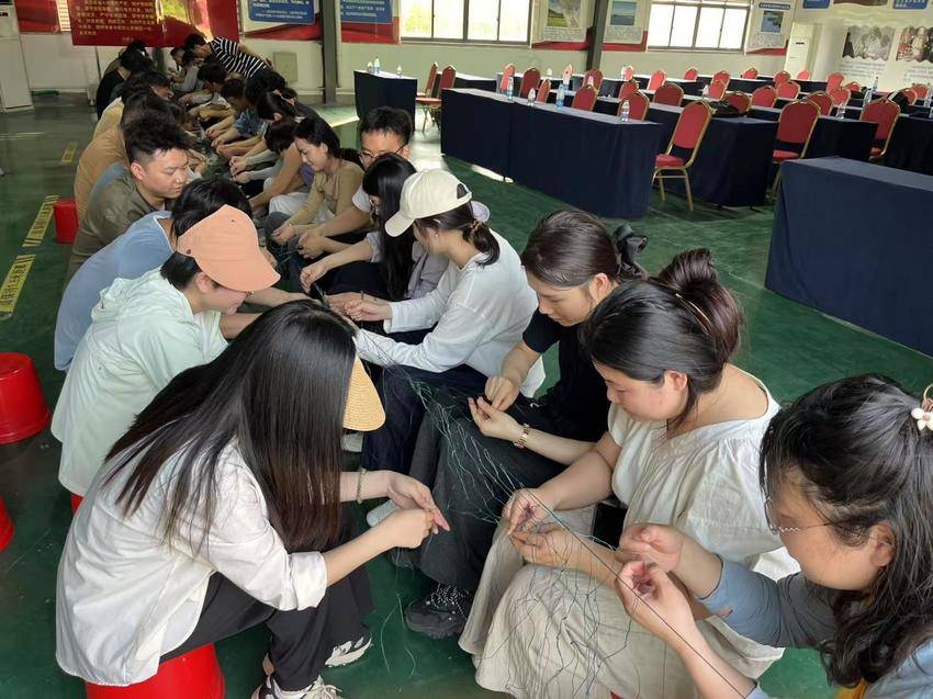 各小组还投入到编织渔网的团队活动中。大家分工协作、互帮互助、密切配合,一张渔网逐渐成型。通过这一活动,学员们不仅增强了动手能力,更在协作过程中深切体会到团队凝聚力和集体智慧的重要性。