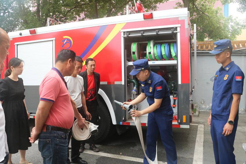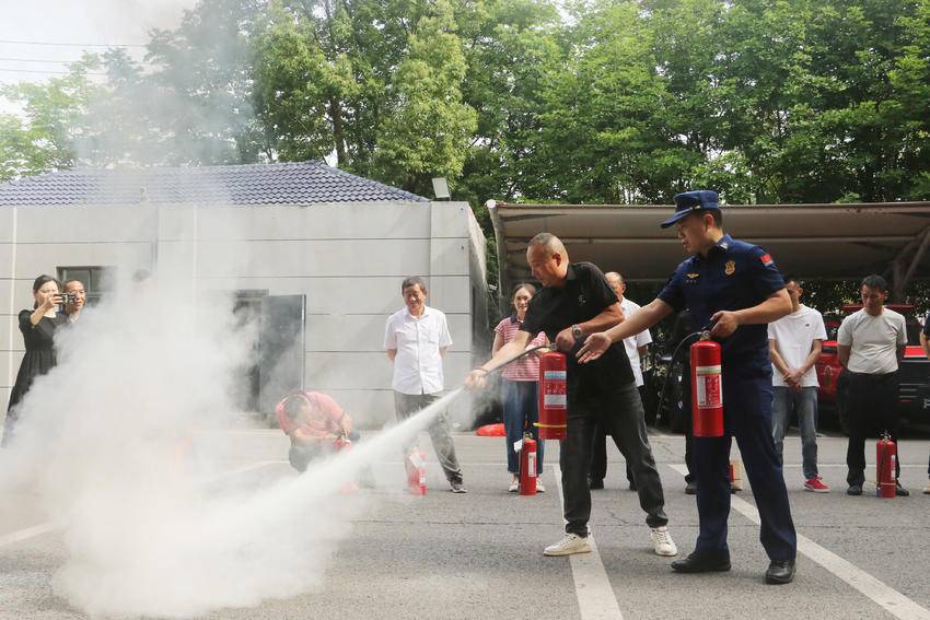 “一提、二拔、三握、四压,大家一定要记住,要对准火源根部按压喷射……”“室内消火栓是针对一些初期火灾使用的,操作简单,使用时一定要对准卡口……”。培训现场,消防员演示灭火器和室内消火栓的规范操作流程,还同步讲解日常用火用电安全常识以及火灾报警、疏散逃生的关键注意事项。