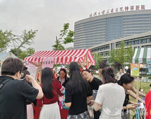 活动当日下午6时,各科室精心打造的特色摊位纷纷亮相。康复中心医生现场把脉问诊,调配中药香囊;麻醉科制作绿豆沙、烘焙甜点;精神科推出手工饰品、美甲服务。此外,童趣绘本、多肉绿植等摊位前也热闹非凡,趣味套圈游戏更是吸引了众多市民、患者家属及职工参与。