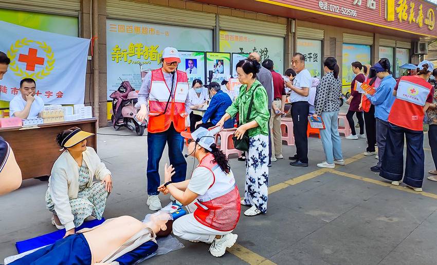 湖北日报客户端讯(通讯员王晓曦 )4月29日,安陆市红十字会联合市二医院在五一社区开展“健康守护进社区 急救技能惠万家”应急救护知识普及宣传及健康义诊活动