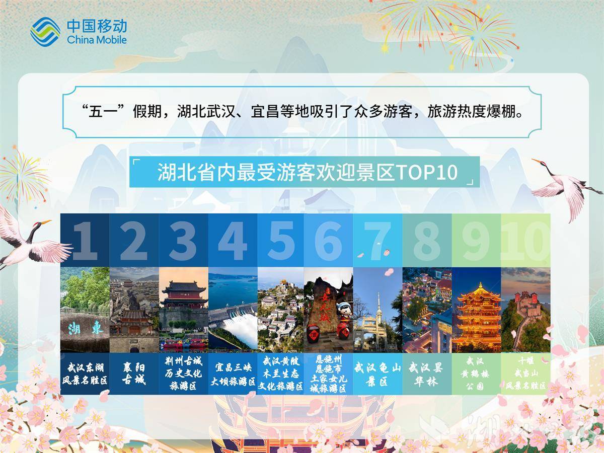 湖北移动大数据统计“五一”假期湖北热门景区排名。