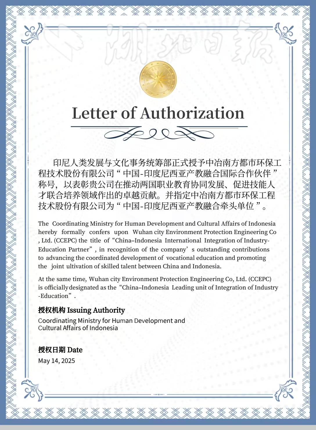 座谈会上,印尼人类发展与文化事务统筹部授予中冶南方都市环保“中印尼产教融合国际合作伙伴”称号,并指定该公司为“中印尼产教融合牵头单位”。未来,中冶南方都市环保将持续开展中印尼国际产教融合项目,组织两国师资交流培训,共建专业标准与课程资源,搭建中国院校、印尼中资企业与印尼理工学院的合作桥梁。