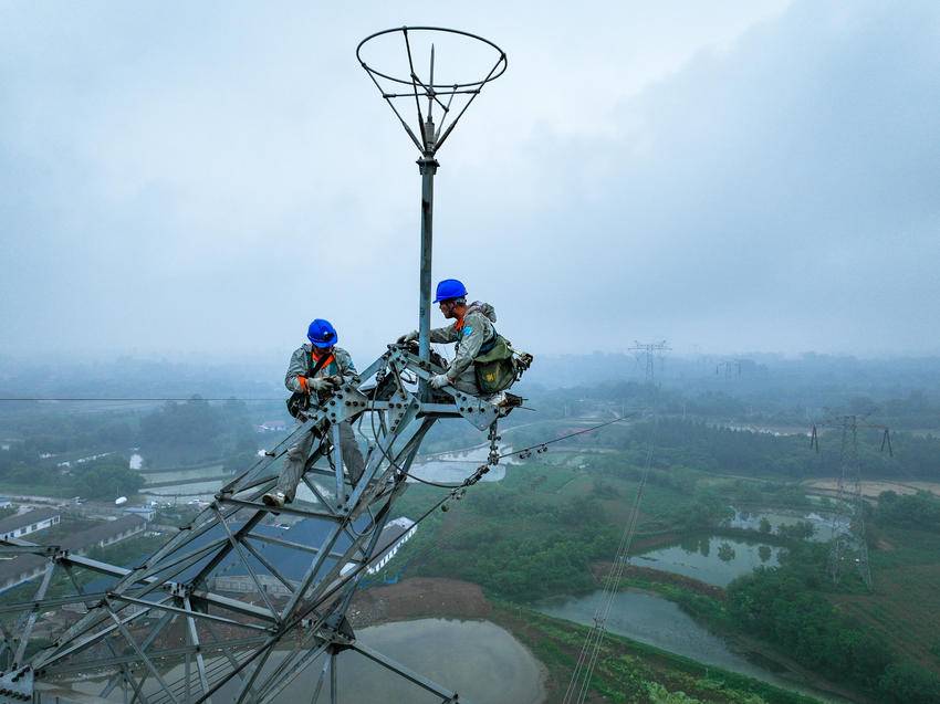 5月15日,在湖北省沙洋市±500千伏林枫线89号塔地线断股消缺现场,国网湖北超高压公司荆门运维分部工作负责人李如国对着对讲机喊道:“作业人员注意,现在风速2级,湿度68%,符合带电作业条件,准备登塔,无人机飞手也做好准备”。随着指令下达,一场高空带电消缺攻坚战正式打响。此次作业需处理89号塔和120号塔地线断股两处缺陷,荆门运维分部成立党员突击队将在线路带电情况下完成这场“空中手术”。