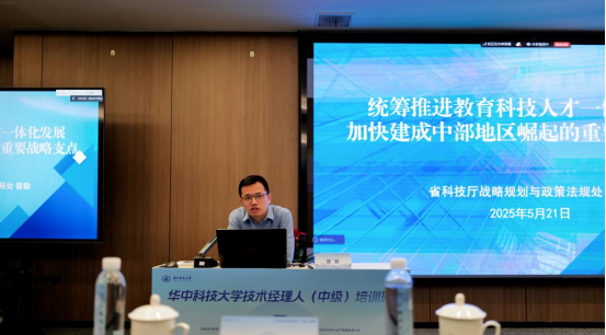 培训班课程内容涵盖科技成果转化全链条,兼具理论前瞻性与实践指导性。湖北省科技厅战略规划处副处长曾毅、湖北技术交易所所长盛建新等政产学研领域专家分别以《统筹推进教育科技人才一体化发展 加快建成中部地区崛起的重要战略支点》《高校科技成果转化形式和实践探索》为题授课。