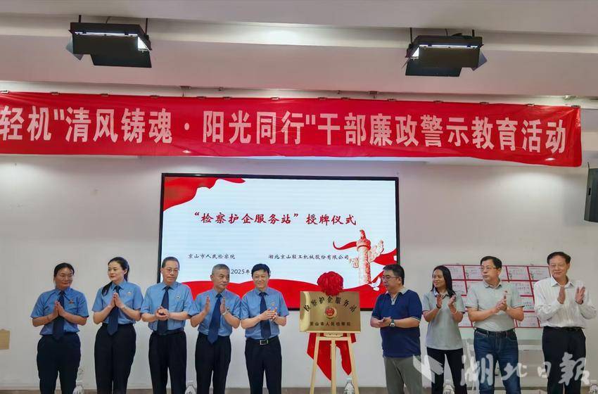 湖北日报客户端讯(通讯员 朱燕茹、聂安俞)5月23日,京山市检察院联合京山轻工机械股份有限公司举行“检察护企服务站”揭牌仪式暨“清风铸魂·阳光同行”干部廉政警示教育活动。