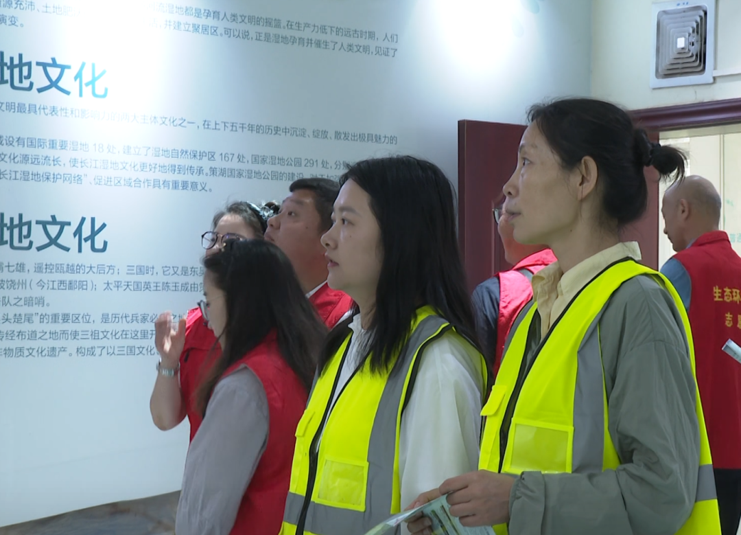 在策湖湿地保护宣传展览馆,参观者通过多媒体展示和图文展板,深入了解了策湖作为长江流域重要湿地的生态价值。展览详细展示了策湖在维持生态平衡、涵养水源、调节气候等方面的重要作用。随后,参与者来到策湖国家湿地公园水生态修复工程现场,工作人员详细介绍了近年来在水体治理、植被恢复、栖息地保护等方面取得的成效。