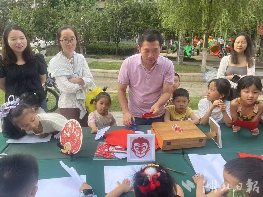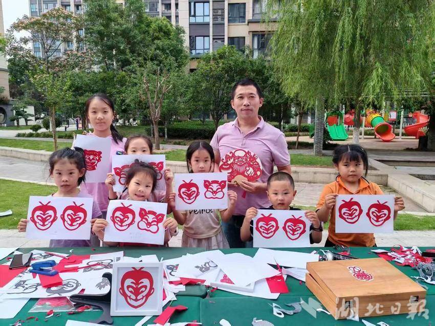 在窗花创意区,钟祥剪纸非遗传承人江小鱼现场教学,业主们创作出“龙腾粽香”“艾草安康”等主题窗花,青少年们对哪吒、孙悟空等卡通剪纸更是兴致盎然,纷纷试学试剪。此次公益活动通过“文化体验+公益传递”模式,既弘扬了非遗技艺,又深化了邻里互助精神,彰显了物业服务的人文温度。