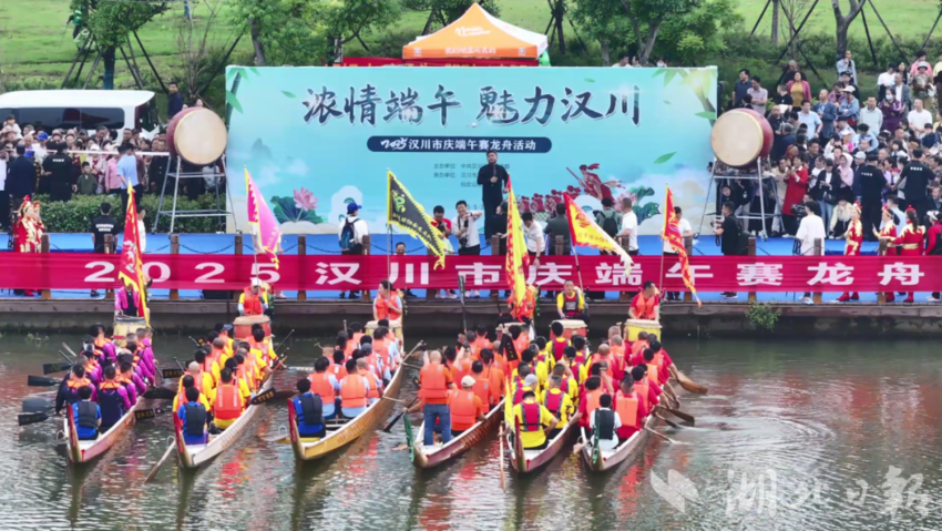 活动现场,除了龙舟竞渡,独具地方特色的汉川渔鼓、划彩船以及武术等非遗民俗表演,为节日增添了浓厚的传统文化氛围。