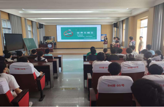 湖北日报客户端讯(通讯员刘小平付德志) 5月30日,安陆市烟店镇初级中学以“拒绝烟草诱惑,对第一支烟说不”为主题,在校多功能报告厅举办禁烟教育宣传活动,引导学生远离烟草危害。