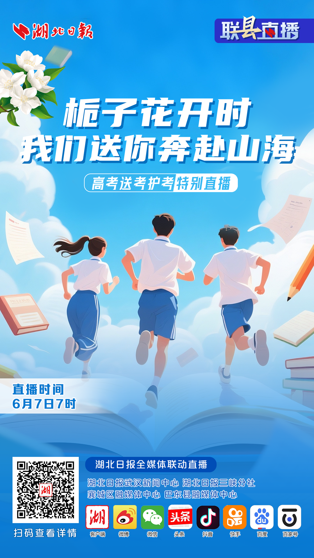 栀子花开,梦想启航,2025年高考启幕。6月7日7时,湖北日报联合县(市、区)融媒体中心开展《栀子花开时,我们送你奔赴山海——高考送考护考特别直播》,直击武汉、宜昌、襄阳、巴东四地送考护考现场,见证考生们的青春激扬,记录考场外的温暖守护。愿所有考生落笔生花,圆梦今夏!