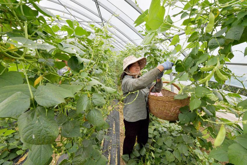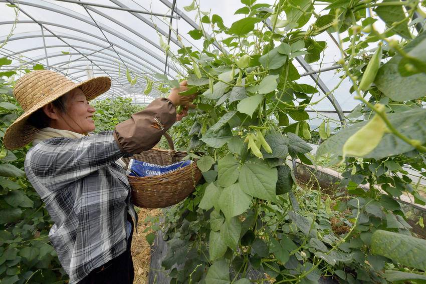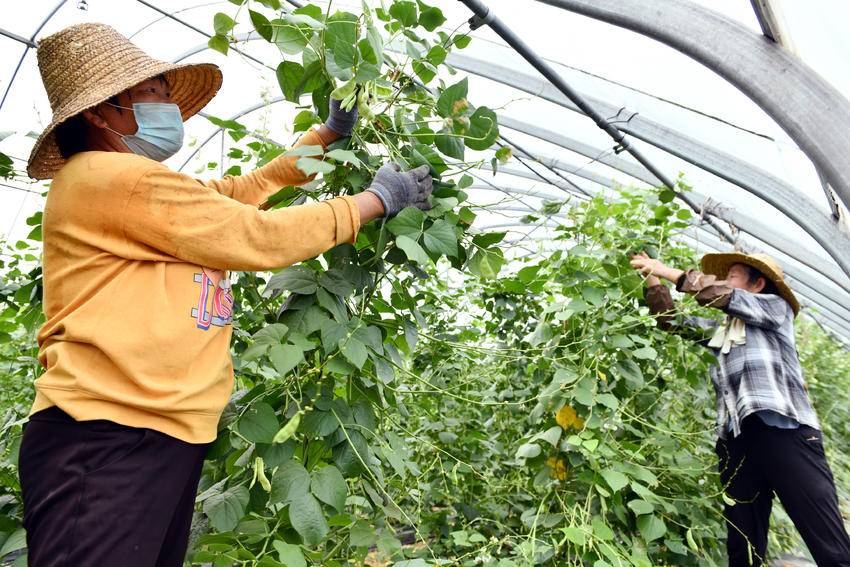 6月6日,在襄城区尹集乡千弓村的蔬菜基地大棚里,扁豆长势喜人,迎来了采收旺季。种植户正忙着组织人员采摘扁豆,以8元每公斤对外销售,亩产可达1000公斤以上。小扁豆成为襄城区农户增收致富的“金豆豆”。