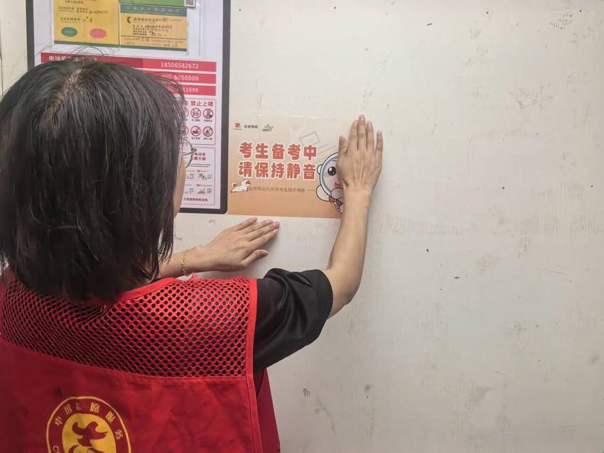 活动现场,工作人员向领取文具包的考生及家长致以亲切问候,叮嘱考生提前做好考试准备,放松心态、从容应考。志愿者和工作人员在电梯和公共区域,张贴静音提示,通过“静音护考”行动,为即将参加高考的学子们营造安静的学习和休息环境。