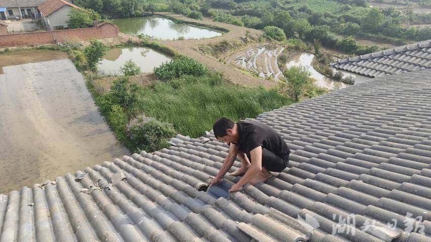 湖北日报客户端讯(通讯员王欣怡、王德华)近日,钟祥市石牌镇郑坪村网格员在巡查中发现,村委会办公室楼顶因大风出现瓦片松动、脱落现象,破碎的瓦片随时可能坠落,威胁过往村民安全并影响办公。