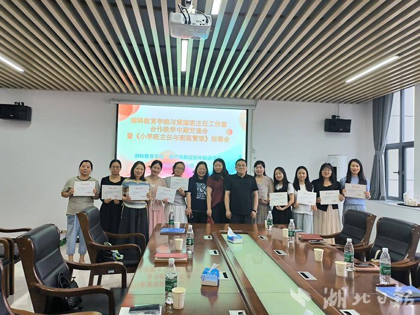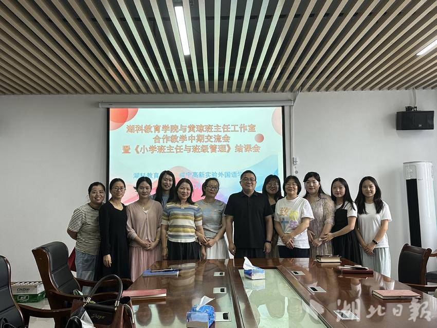 湖北日报客户端讯(通讯员黎欢、余奇、陈柳含)2024年3月26日,黄琼班主任工作室与湖北科技学院正式签署合作协议,开启协同育人新篇章。今年6月10日,在湖北科技学院揽胜楼1122室举办合作教学中期交流暨《小学班主任与班级管理》课程结课会,这次推进会标志着这一创新合作取得阶段性成果。