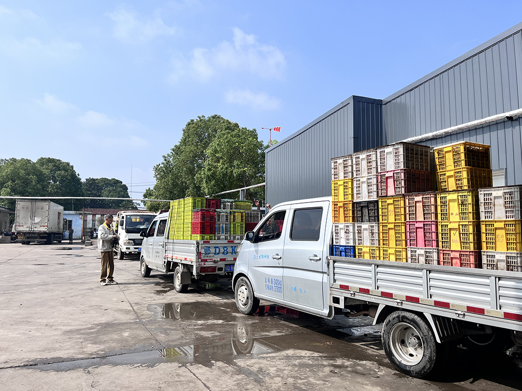 湖北波涛水产食品有限公司厂区内,一辆辆满载小龙虾的货车首尾相接,工人们动作娴熟地将一箱箱小龙虾从车上卸下,随后迅速开展盘货、分拣工作。他们凭借多年的从业经验,依据小龙虾的个头大小、品质优劣进行精准分类,为后续的生产加工做准备。