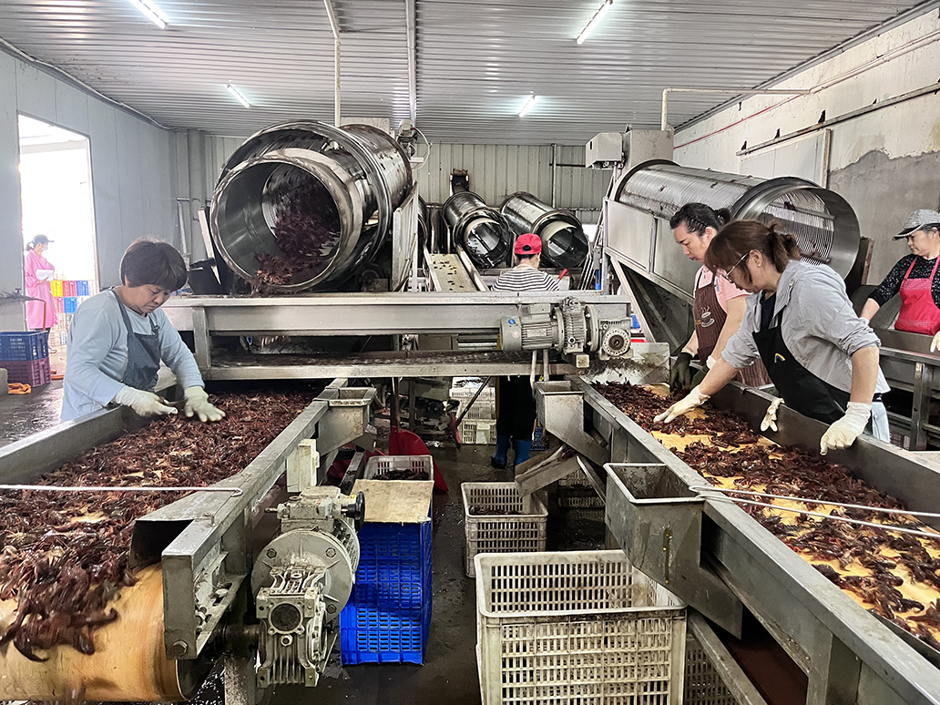 “自4月底生产线启动以来,便进入满负荷运转状态,日收购量高达60吨,这些小龙虾均从周边农户手中收购而来。我们主要生产虾尾、整只原味虾、虾仁等速冻产品,截至目前,已收购并加工小龙虾600吨。”该公司董事长姜华华介绍,他们的产品主要供应给国内的大型超市、批发市场,以及部分制作调味虾的企业。随着市场需求不断增长,公司订单量也持续攀升,员工们的生产热情也被充分激发。