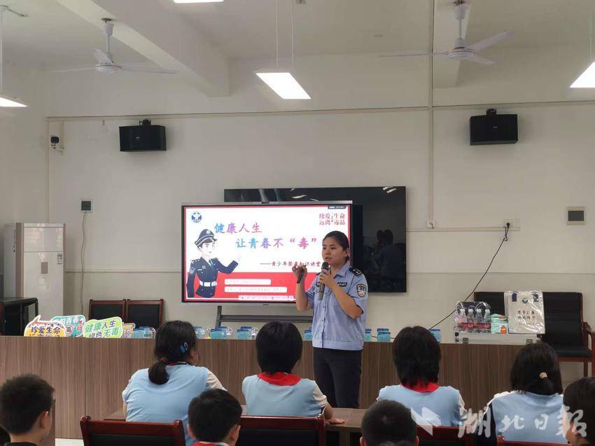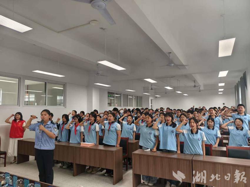 湖北日报客户端讯(通讯员甘崇雪、黎润钊)6 月 12 日,咸宁市大洲湖学校邀请官埠桥镇社区戒毒康复中心和咸宁市强制隔离戒毒所工作人员和警官,为七年级 94 名学生带来一场“健康人生,让青春不‘毒’行”主题禁毒知识讲座。活动通过沉浸式讲解、互动体验与庄严宣誓,为青少年筑牢识毒防毒拒毒的 "铜墙铁壁"。