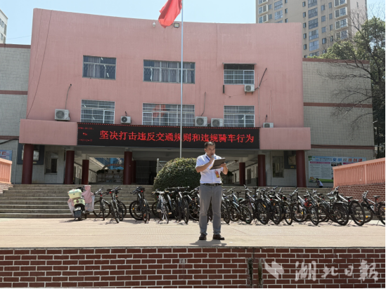 整治行动过程中,6支由校领导、行政人员、班主任及家长志愿者组成的“护学岗”准时就位。他们对骑行的学生进行耐心劝导,对车辆暂时由学校统一保管,由家长到学校领取并签订安全承诺书。据统计,专项整治首日,6个小组共劝导违规骑行学生37人次。上午9点50分,学校利用大课间时间,组织全体学生进行交通安全专题教育。学校安全分管负责人强调,“全面禁止骑自行车、电动车上下学是以学生安全为最高准则的必要举措。少数学生“骑车带人”“占用机动车道”“高速追逐”,一旦与机动车发生碰撞,后果往往非死即残。血的教训警示我们,必须以‘零容忍’态度杜绝此类风险。”