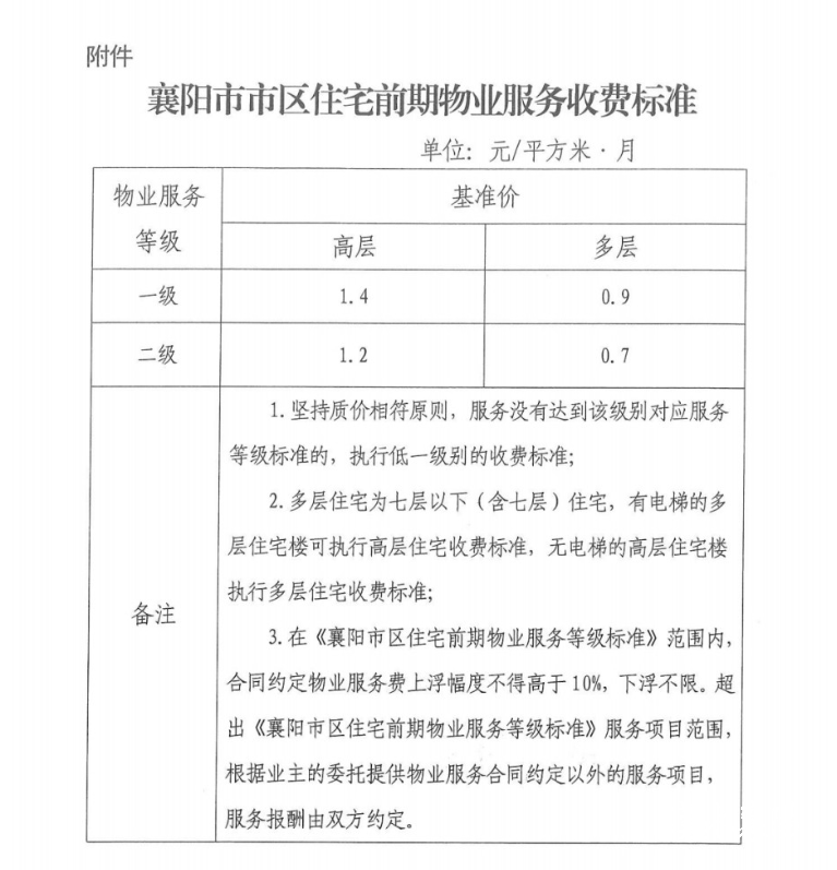 2023年7月,襄阳市曾提出将物业服务等级由两级扩展为四级的方案。该方案拟将一级服务高层基准价上调至每月每平方米1.8元,但最终未能实施。