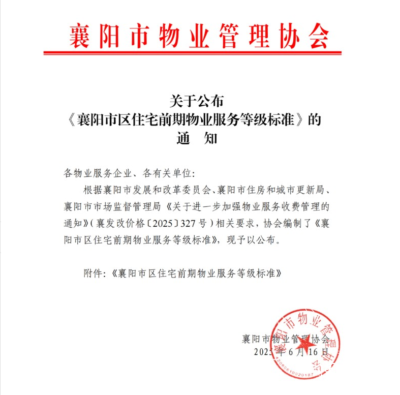 襄阳市物业管理协会正式公布