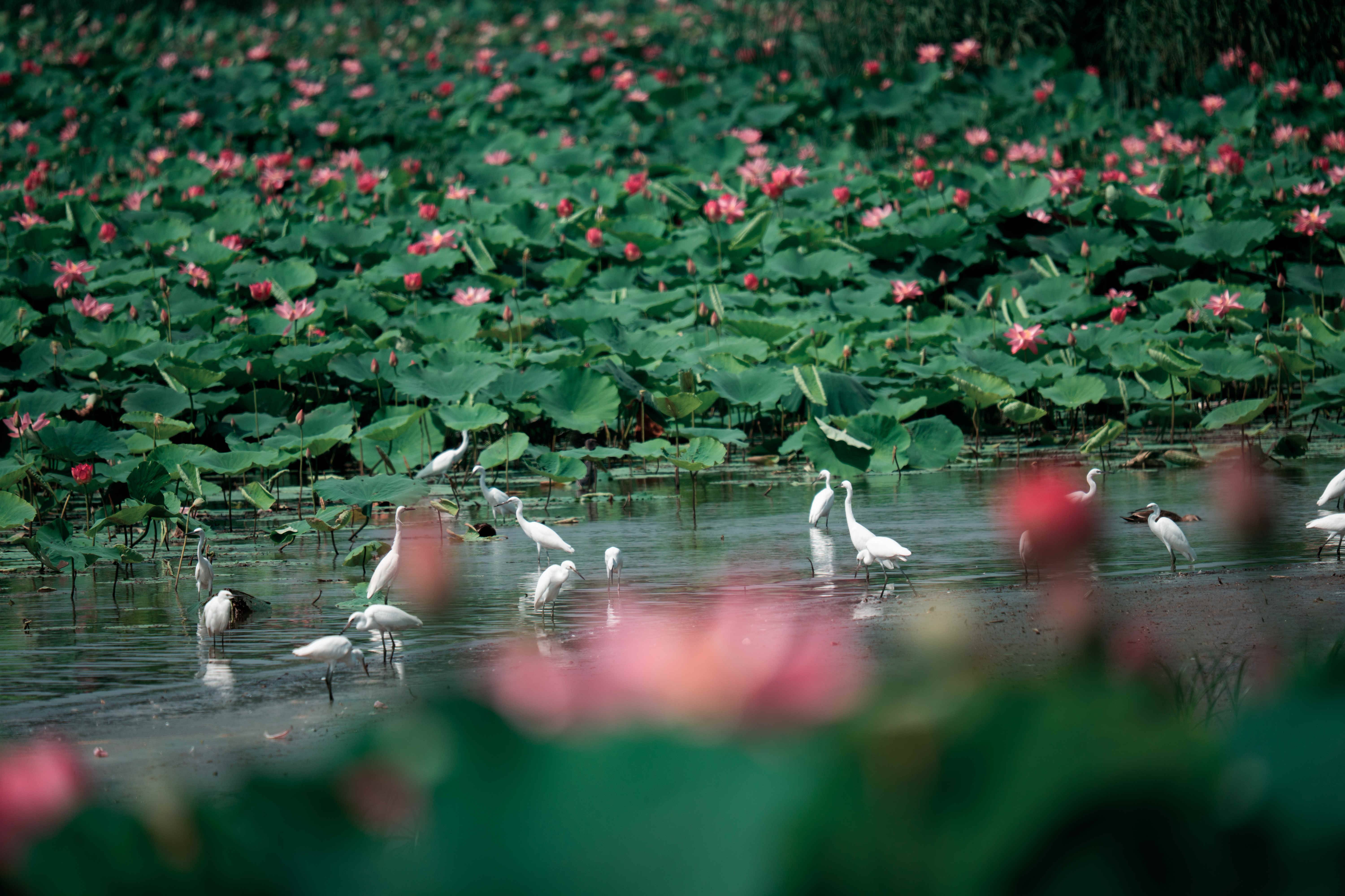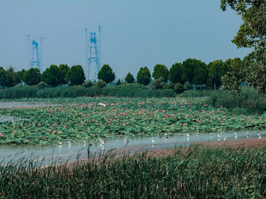 湖北日报客户端讯(通讯员 安超 朱瑶)荷花一枝,夏意满塘。6月17日,在枝江金湖湿地公园,一朵朵荷花盛开,在水中央亭亭而立,风姿绰约。湖滩上,水鸟在荷间悠然踱步,时而低头觅食,时而轻抖羽翼。远处的水上栈道蜿蜒,游人在此露营,享受着片刻的宁静与惬意。